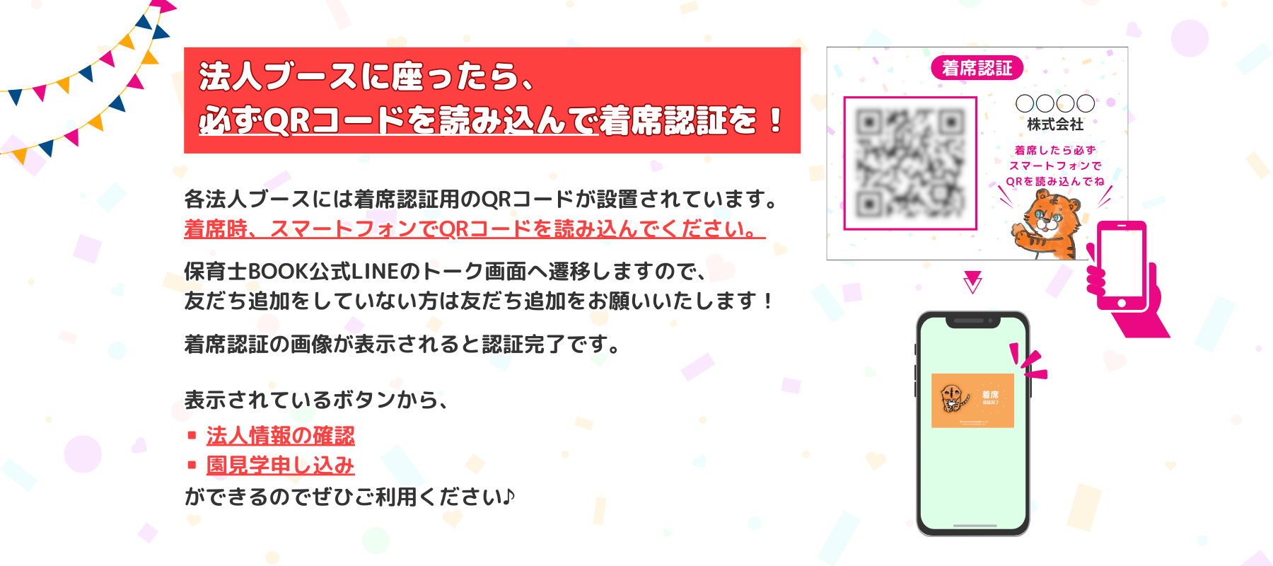 - 無理な勧誘や電話はありません。保育士BOOKは新卒学生さん向けの有料職業紹介は一切行っておらず、学生さんの意思を一番大切にしていますので安心してご参加ください。